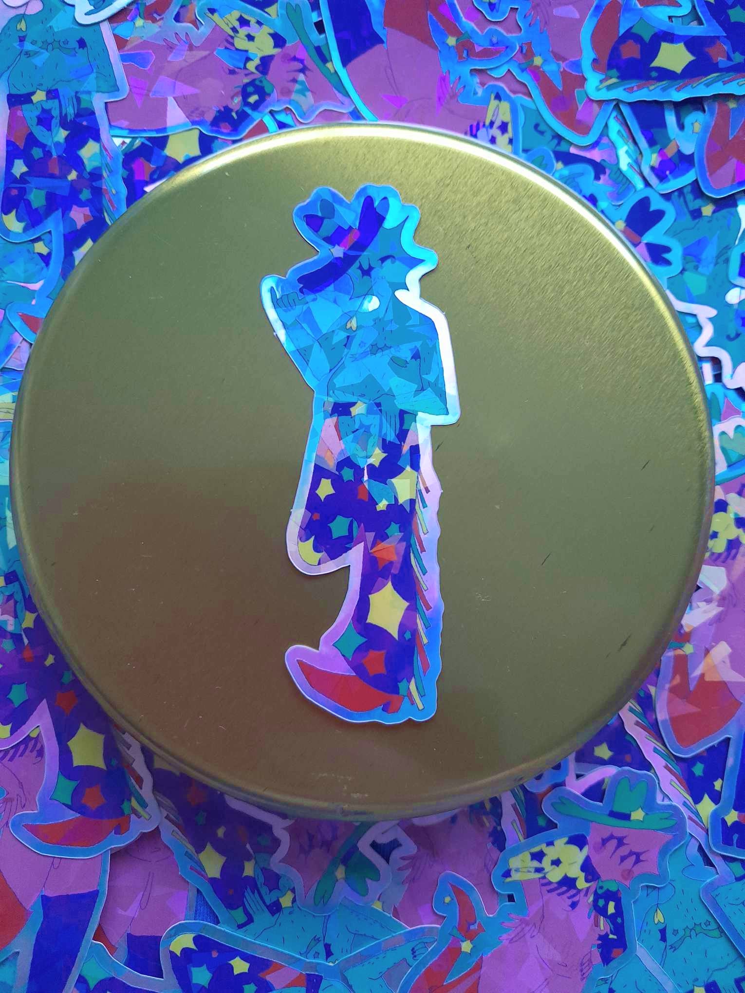 Howdy ya'll, come have a gander at these two trans cow folk! These shiny stickers have a cracked ice finish and are shiny all over! Coming in a Fem [on the left] and Masc [on the right] version!